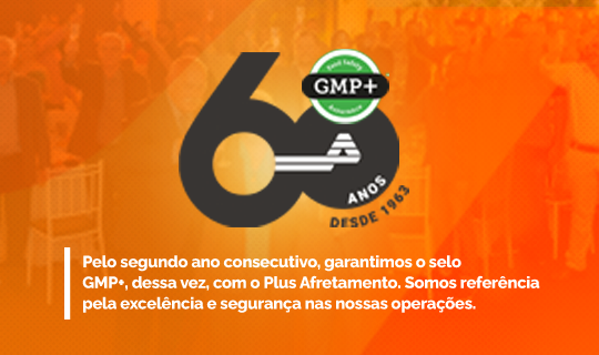 Conquista do GMP+FSA Versão 2020, reconhecimento pela excelência e segurança nas operações que seguem o padrão internacional que assegura a qualidade na cadeia de alimentação animal.